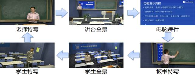 ,采用五机位自动导播系统,操作简单,可实现跨校区、跨学校、跨境授课,实现优质资源共享、实时互动。