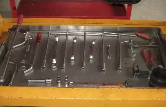 看下图,工具摆放在台子上面,工具少了,还是多了,一眼看不出来。