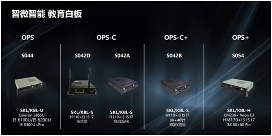 从 2012年 Intel OPS 标准发布,智微推出第一款OPS产品到现在已有 5 年的时间。在过去5年中,智微一直在努力改进并发布新标准新产品,从 OPS ,OPS-C,OPS-C+到今年的 OPS+,从 ATOM 平台的 S036 到 Core 平台的 S044 到现在的 S054,智微根据教育电子白板市场的改变,不断创新转变 。经过时间的历练,智微技术和能力都变得更加成熟稳定,智微的 OPS产品也获得了来自各界的赞赏和表彰。同时智微 OPS 产品均通了过CE,FC,CCC等严格认证,稳定可靠的产品为客户抓住市场机遇提供保障。