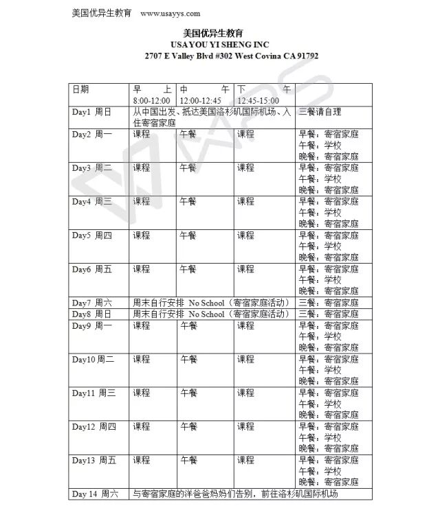 美国优异生教育(USA YOU YI SHENG INC)是美国洛杉矶集出国留学丶微留学丶全年赴美插班丶冬夏令营丶定制游学团丶教育规划丶名校项目丶独家网课转学分项目丶身份转换丶转学丶安排寄宿家庭丶监护人丶旅游丶留学生移民等为一体的海外升学一站式的公司。为冬夏令营丶学校考察的赴美客人提供个人或团体的地接服务。