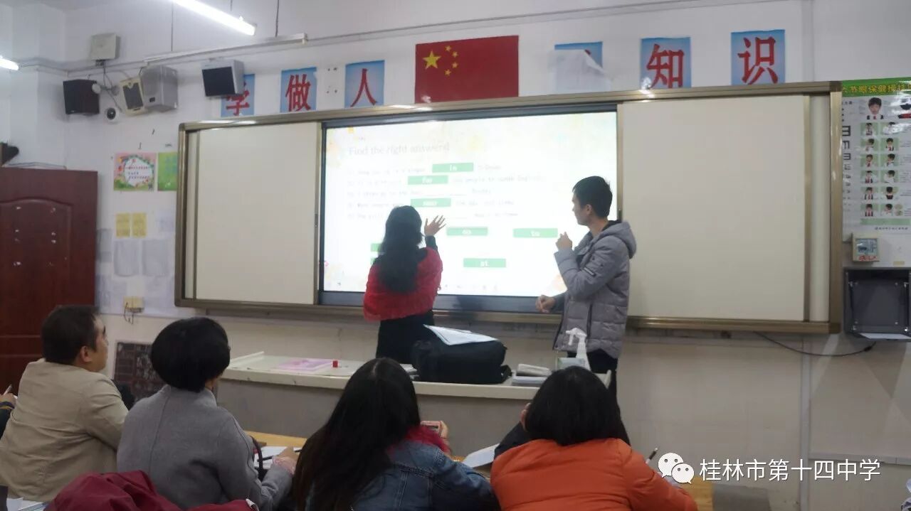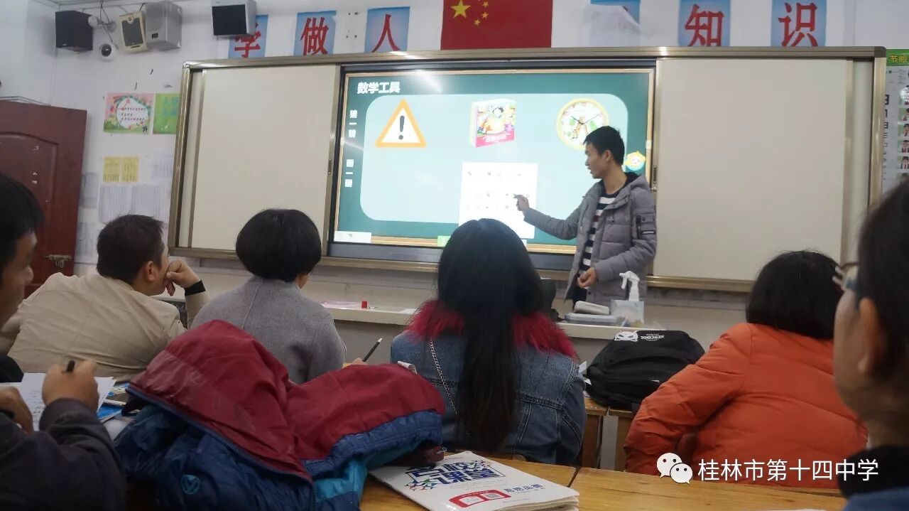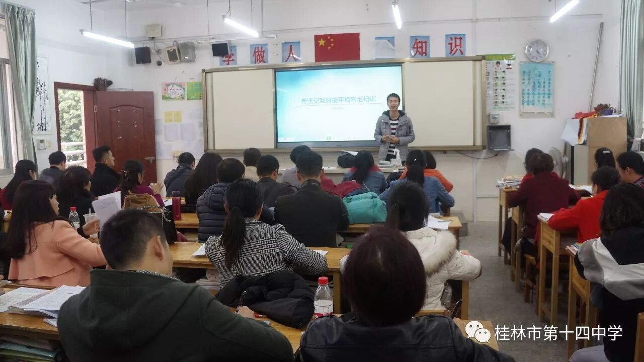 为了提高学校教师的现代化教育教学水平,努力打造高效课堂,2017年11月28日下午4点30分,桂林市第十四中学组织全体教师在该校九年级1班进行了希沃白板5使用与教学培训。
