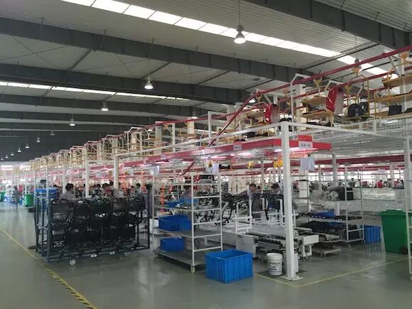 进入流水线后,最先拼装的是车架,之后再是电气件,包括中控面板以及各种电线的安装,最后才会把外观的塑料壳装上。而在电气件安装和外观安装后还会各有一次检验程序,以提高良品率。