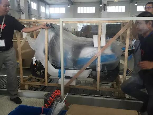 接下来,会有质检人员最后确认电动车的质量,一旦确认没有问题就会进入包装程序。从大包装到细节包装也都是流水线作业。