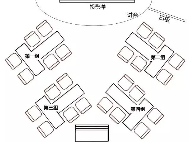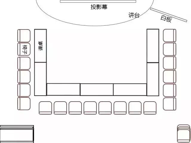 “凹型”摆放模式的优点是,讲师和教室里的每个人的距离相仿,授课效果直达每个人的路径差不多长,听课效果等效。