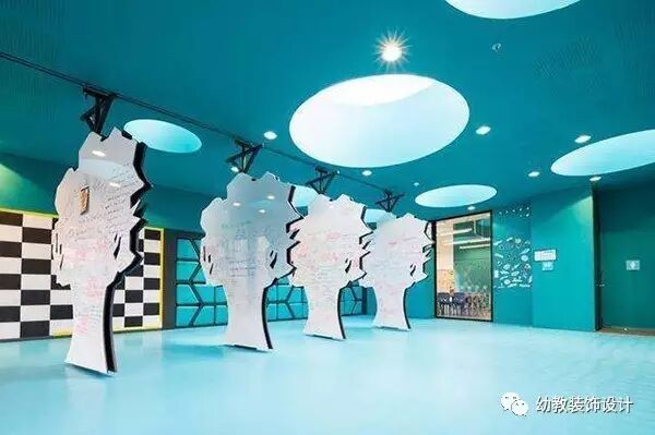 悬挂式的可移动树形画板,供孩子们在上面绘画