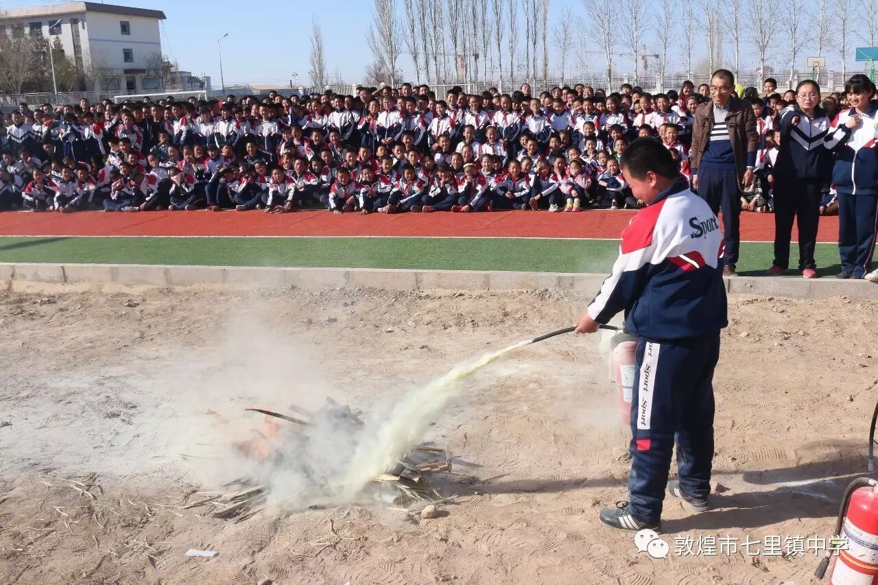16时20分,急促的火情警报声响彻校园,老师们立即到达指定位置,引导教学楼和宿舍楼内的学生快速疏散,学生们弯着腰、用衣袖、毛巾等捂住口鼻,有序撤离到学校操场的安全地带,各班清点人数并上报。全校师生安全疏散完毕后,学校邀请的七里镇派出所指导员对全体师生从如何报火警、火灾的预防、火场自救及逃生方法等消防安全基本常识进行了讲解,并现场演示了灭火器的操作程序,部分师生依照要领演练了使用灭火器的方法,有效地提高了师生的安全意识和防火技能。