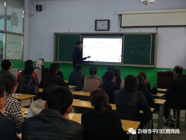 为全面提升学校教师信息技术应用能力,促进教师转变教育教学方式,推动广大教师在课堂教学和日常工作中熟练高效应用信息技术,实现信息技术与教育教学的深度融合, 2017年10月10日下午第一、二节课,白银九中邀请希沃公司培训人员开展了希沃交互式电子白板的信息化技术培训。学校无课的老师参加了培训,张双十校长亲临现场参加培训。