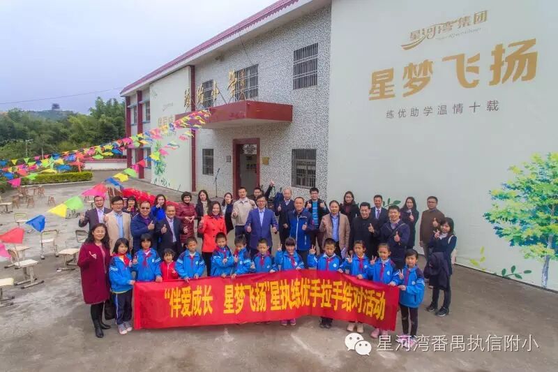 2016年11月10日,由广州市海珠区委、兴宁市教育局、兴宁市罗浮镇党委、星河湾集团及集团党委、星河湾执信中小学老师、学生及其家长等一行数十人组成的公益团队来到了兴宁市罗浮镇练优小学,展开了为期两天的“伴爱成长,星梦飞扬”活动。