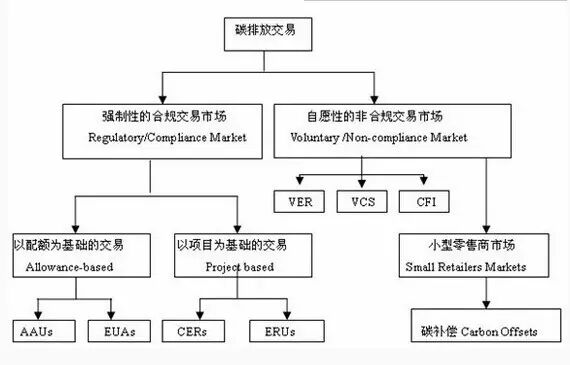 关于碳交易门槛很高的问题,这张图描述了先前国际碳交易的主要市场情况和产品分类。国内模式也是一样,强制性的减排就是配额交易,自愿性的减排就是CCER交易。