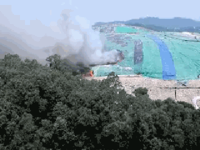 今天上午约10时35分,火烧岗垃圾填埋场山顶垃圾堆体着火燃烧,过火面积约100平方米,人员已疏散,无人员伤亡,现场火情已得到控制。、消防、应急、、南村、东环等单位正在处置。
