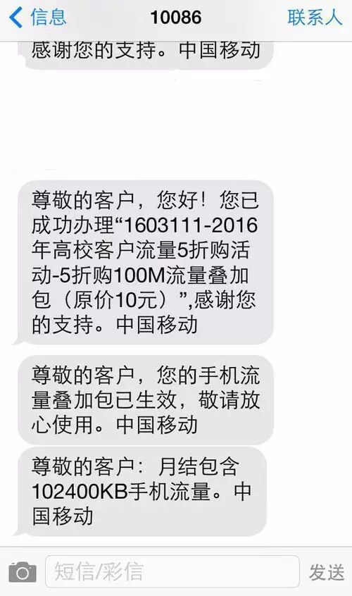 3. 激活次月的10号起,可通过短厅指令可1折办理100M/300M/500M/1G档次流量叠加包(原价10/20/30/50元),每客户每月限选一个档次办理一次。