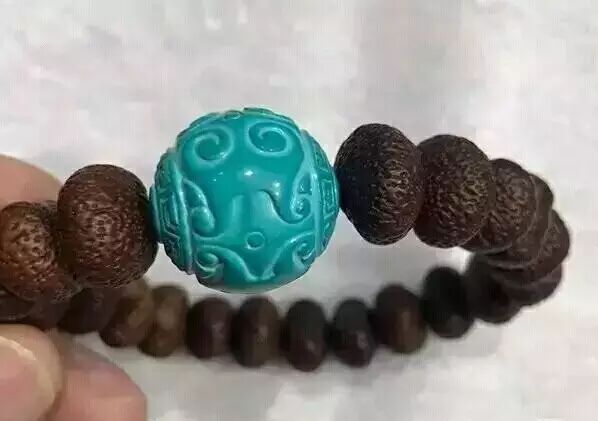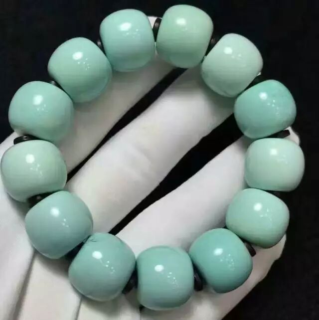 我乍一眼看,确实颜色均匀,无杂质,瓷度好,跟菩提籽搭配简直完美!但是再瞅瞅,总感觉颜色有点不对。