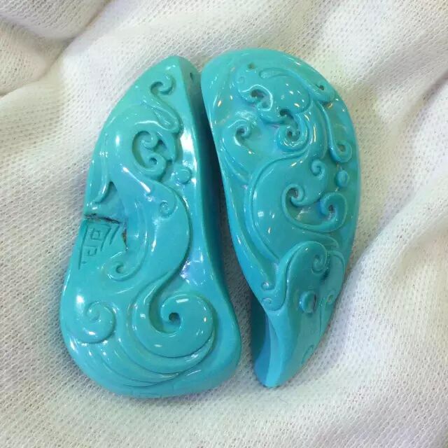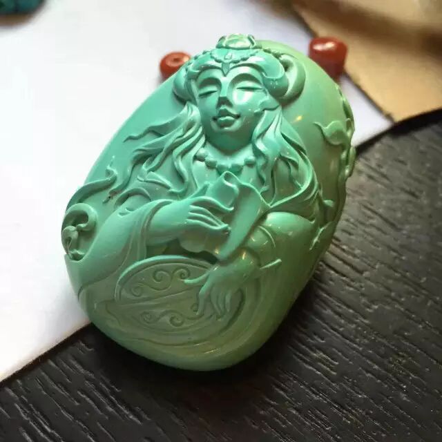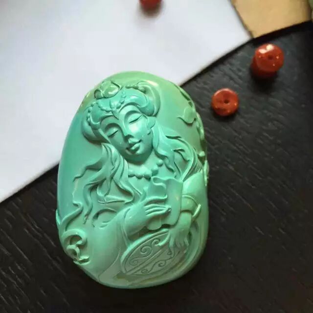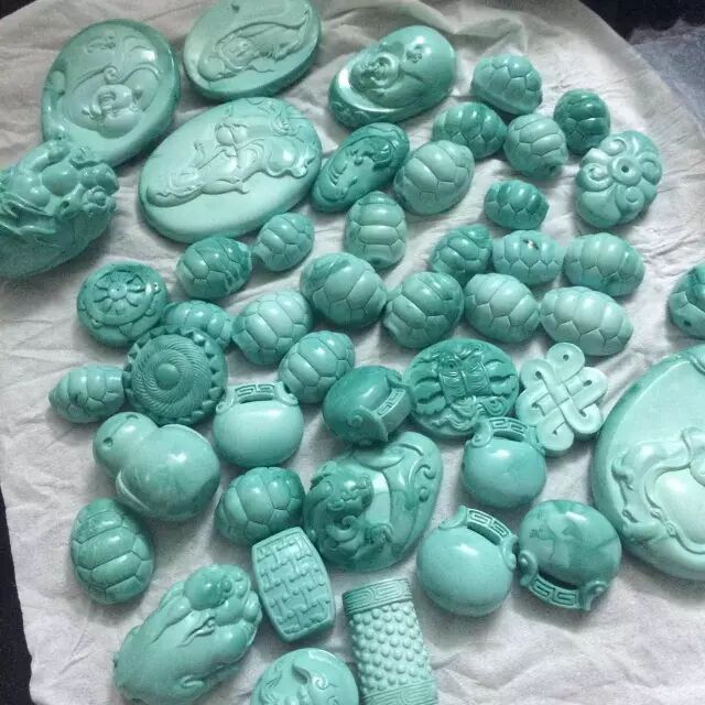 没错!这就是最近朋友圈疯狂秒杀的菱镁矿绿松,不过这次坑爹的商家下了很大的血本,先染色,再请人工手雕,虽然换汤不换药,但这迷惑性可是大大提高了!