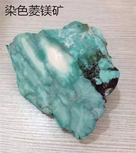 正常情况下,大家不会把它与绿松石混淆,但由于质地稀疏,容易沁入颜色,价格低廉,常被不良商家拿来用作染色注胶处理,以此来冒充绿松石。