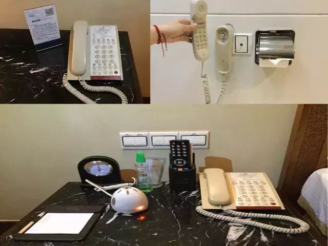 在房间内遇到突发情况,客房床头、浴室、书桌均配备有线电话,一键即可拨号,我们会第一时间为您提供帮助。
