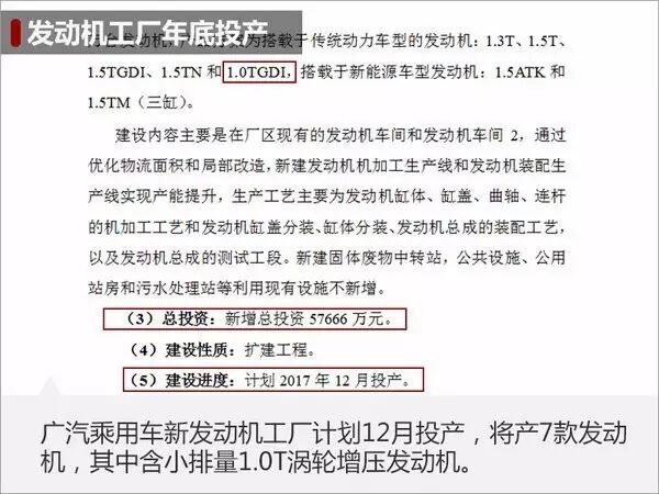 车市速递 | 广汽传祺1.0T发动机年底投产 3款车将搭载