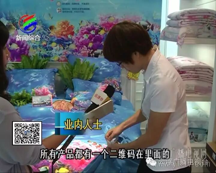 “首先可以摸,手感舒适,还要看标签,全部都有布艺标识的,可以追溯到真假。所有产品都有一个二维码在里面的,这样比较放心安全,而且不会有甲醛。我们都会全部把好(进货)的质量关的,全部都有合格证,每一套被都有二维码可以扫描出来。”