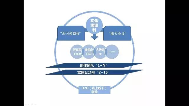 现在,广州海关以文化建设科为枢纽,以“海关爱创作”和“穗关小青”两个微信公众号为指引,指导全关成立“海关小白云”、“大铲雄关”等共15个基层党建文化工作室(组),形成了创作团队“1+N”、党建微信公众号“2+15”的党建文化微联盟格局,并且通过O2O(线上线下)联动模式,凝聚全关党建新媒体合力。