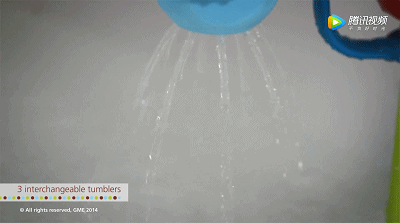 这个杯子下面带有螺旋浆,在水流的冲击下,小小的螺旋浆就会呼噜呼噜飞速旋转;将其他杯子叠放在一起, 水流会发生变化,伴随着哇哇声,相当有意思。