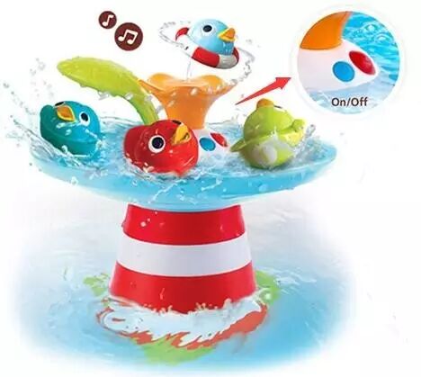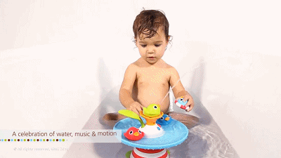 这是一个可以放在澡盆里的音乐喷泉,真的有音乐,真的有喷泉哦。这款能当喷泉玩的玩具对场地几乎没有要求,无论是在桶里、盆里,还是浴缸里,只要能满足4-14厘米的水深,都可以玩起来!