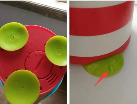 底部有三个吸盘,可完美固定在浴盆底部,宝宝玩耍时,玩具不会到处晃动;每个吸盘上都有一个凸耳哦,吸盘若吸的太紧,轻拉凸耳就可以松开了。