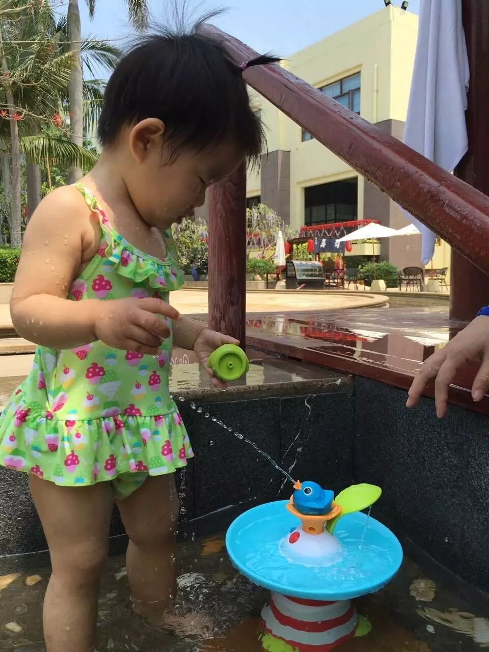 虽然我比较悲剧,宁宁倒是开心疯了,从玩具打开,水伴着音乐声喷出来之后,宁宁的笑声就没有停过,就算和我一样被喷了一脸水,也很欢乐。