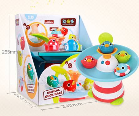 注:4只小鸭子有固定的颜色和功能,但因为生产批次的不同,鸭子颜色对应的出水方式可能会不一样哦,亲们请以收到的实物为准。