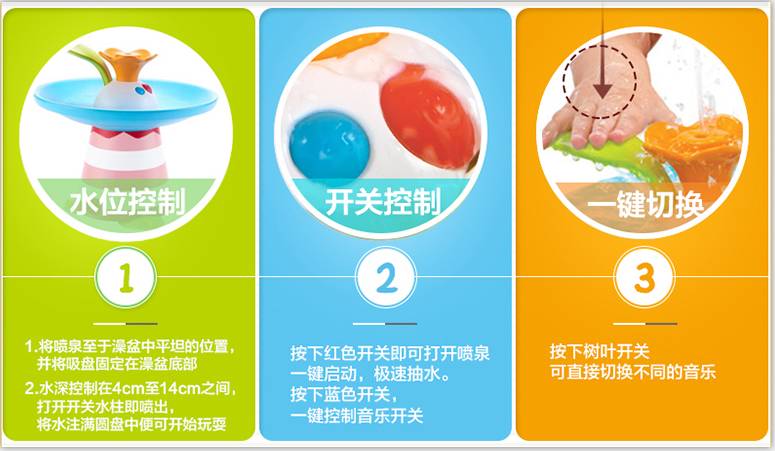 当然啦,一款好的产品,除了可靠的产品品质,细节也非常重要。这款Yookidoo(幼奇多)音乐喷泉,还有很多小细节也设计得非常讨喜,下面就详情介绍下: