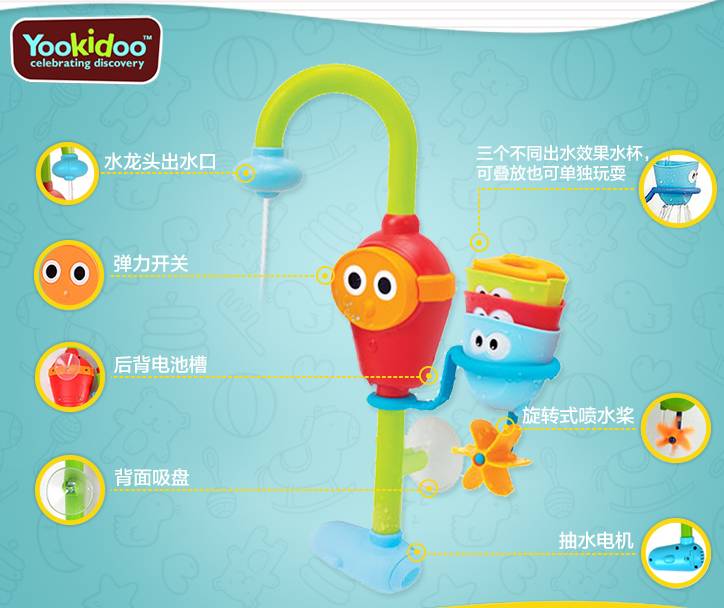 Yookidoo(幼奇多)戏水玩具颠覆了我以前对戏水玩具的认知,将电动元素加入戏水玩具,让水有了更多的形态,更生动,更有趣,也更吸引孩子。