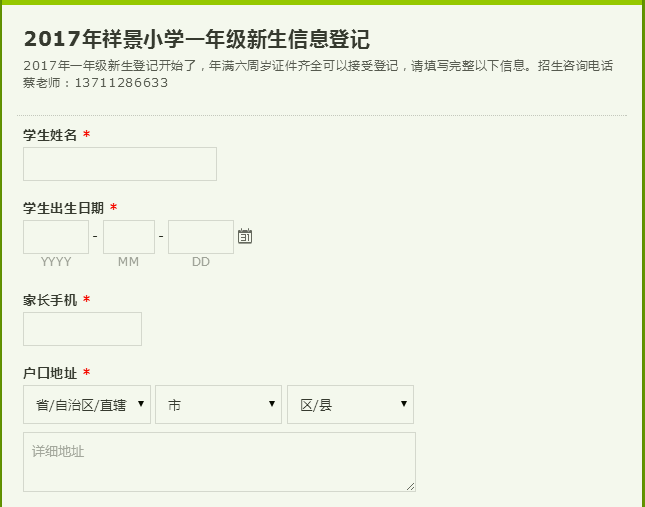 信孚祥景小学 2017年秋季一年级新生信息登记