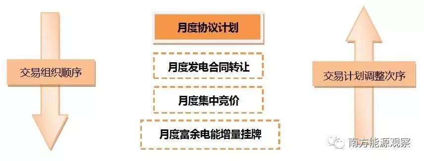交易品种包括月度协议计划(指政府间框架协议电量)、月度发电合同转让、月度集中竞价、月度富余电能增量挂牌四种。其中,如通过月度发电合同转让及集中竞价两种市场化交易方式供需双方均未能成交,则由月度富余电能增量挂牌“保底”,可能在月中或月末进行。