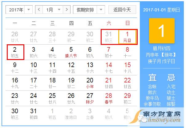 2017元旦节放假安排预测
