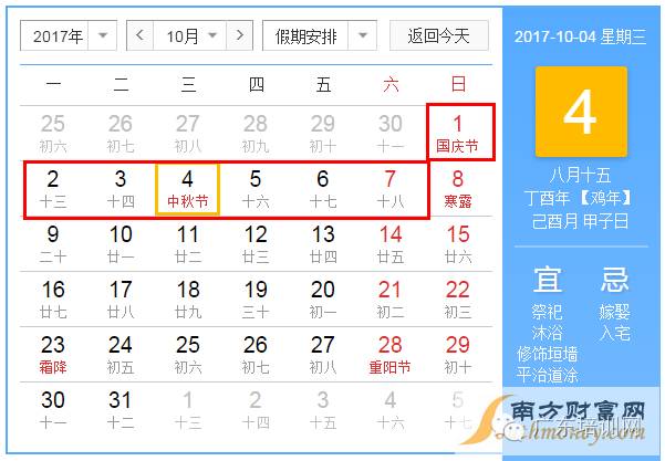 2017年中秋节放假安排预测