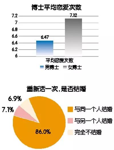 一说到博士,总给人一种眼镜片厚如玻璃瓶底,奔命在实验室和论文堆之间的印象。但是,今年通过对不同受教育程度人群的恋爱经历调查发现,博士群体在恋爱中的表现令人大跌眼镜。从综合恋爱次数上来看,博士高居榜首。调查显示,博士的平均恋爱次数是6.87次,高居第一。从数据上来看,一个本科生谈一次恋爱的时候,博士已经谈完两次,正在酝酿第三次了……更让人意想不到的是,在博士中,常被人们调侃的女博士的恋爱次数更高,平均为7.12次,男博士居然在恋爱次数上拖了女博士的后腿。