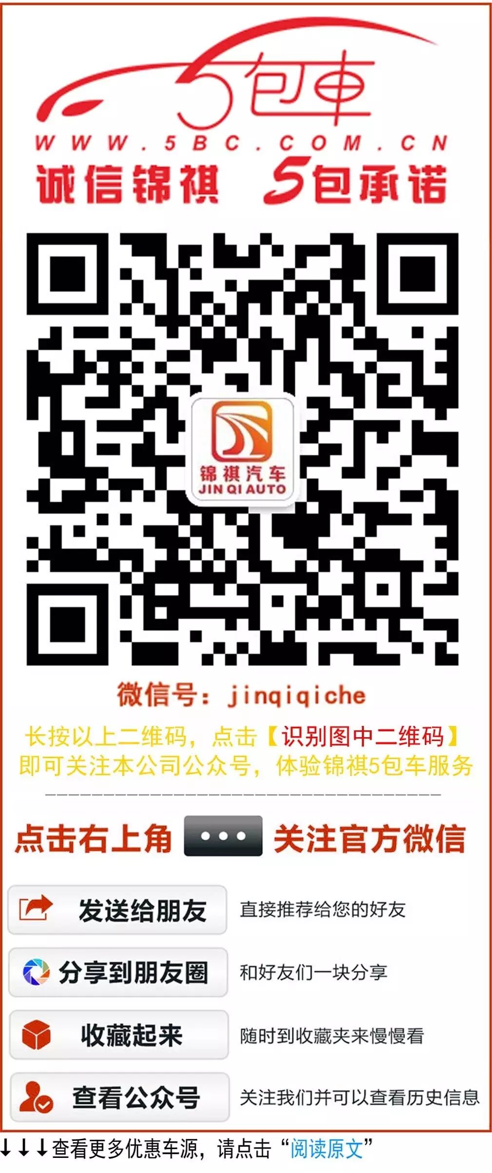 提示:点击上方↑↑↑“锦祺汽车”即可关注本公司公众号,抢购特惠二手车,固定推送时间:11:30am!