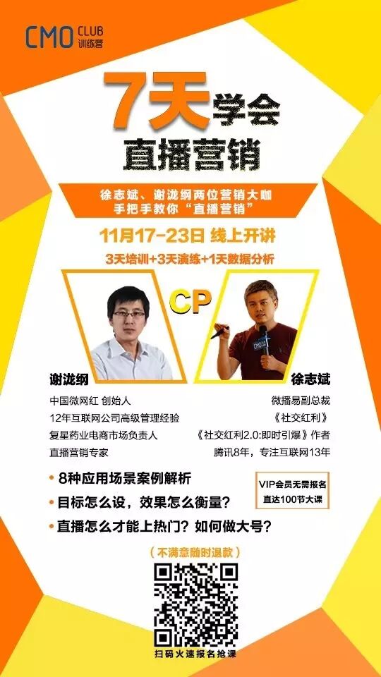 如果我没记错,CMO训练营筹备的这个活动,是需要付费的。如果你有兴趣,可以加入进来。