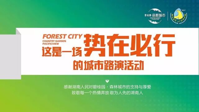 如果其他碧桂园区域都能和湖南区域一样和我积极互动,森林城市的营销就不会那么让人雾里看花,水中望月了。 我也能和当初写恒大海花岛一样,好好来一篇森林城市的营销分析。 当然,即使我的分析能让业内的人明了,也不能阻止者自作聪明式的卖弄,毕竟人家有权利不喜欢。 我想问一个问题,如果你是森林城市的操盘手,你会怎么做? 今天我们先来分享下森林城市『长沙站』的路演。看看在之前广州点亮小蛮腰,上海染绿黄浦江之后,长沙站的路演做了什么? 也希望前期已经结束的广州、上海等站也来分享一下,还有,总部的同学,之前已经在整理的总部层面上的推广分享也得加个速咯。 毕竟,大家还是挺关注森林城市的。