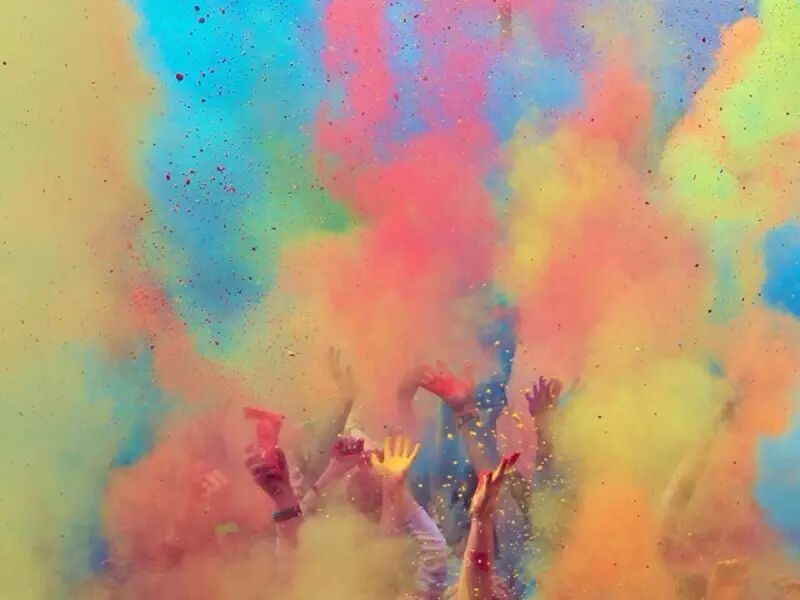 据悉,彩色粉末由纯天然玉米粉制成,对人体和环境无害。
