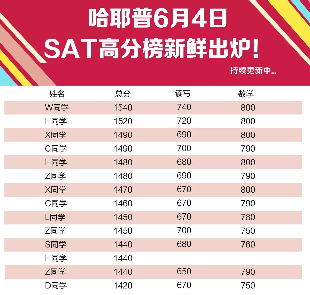 前方一大波高分袭来:6月4日新SAT出分啦,哈耶普高分榜等你来揭!