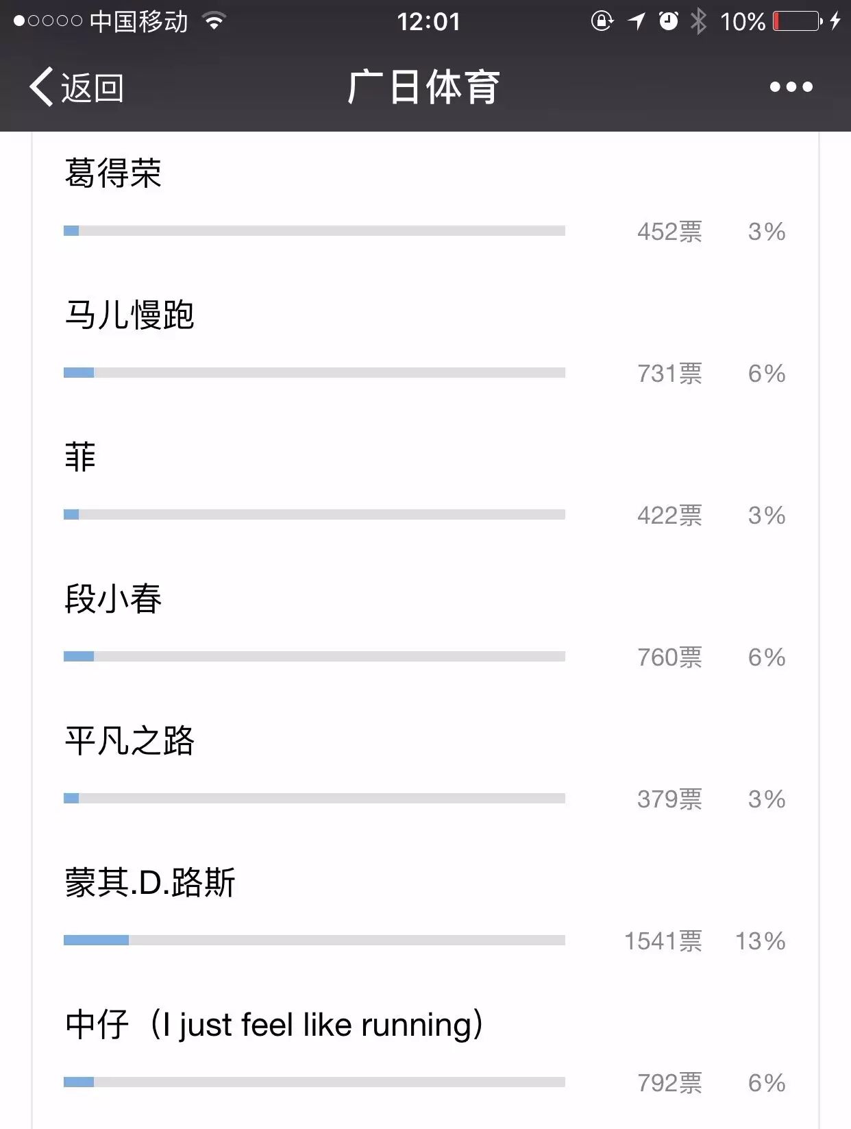 总计16人,15人参加投票,排名前10位获得广马名额。