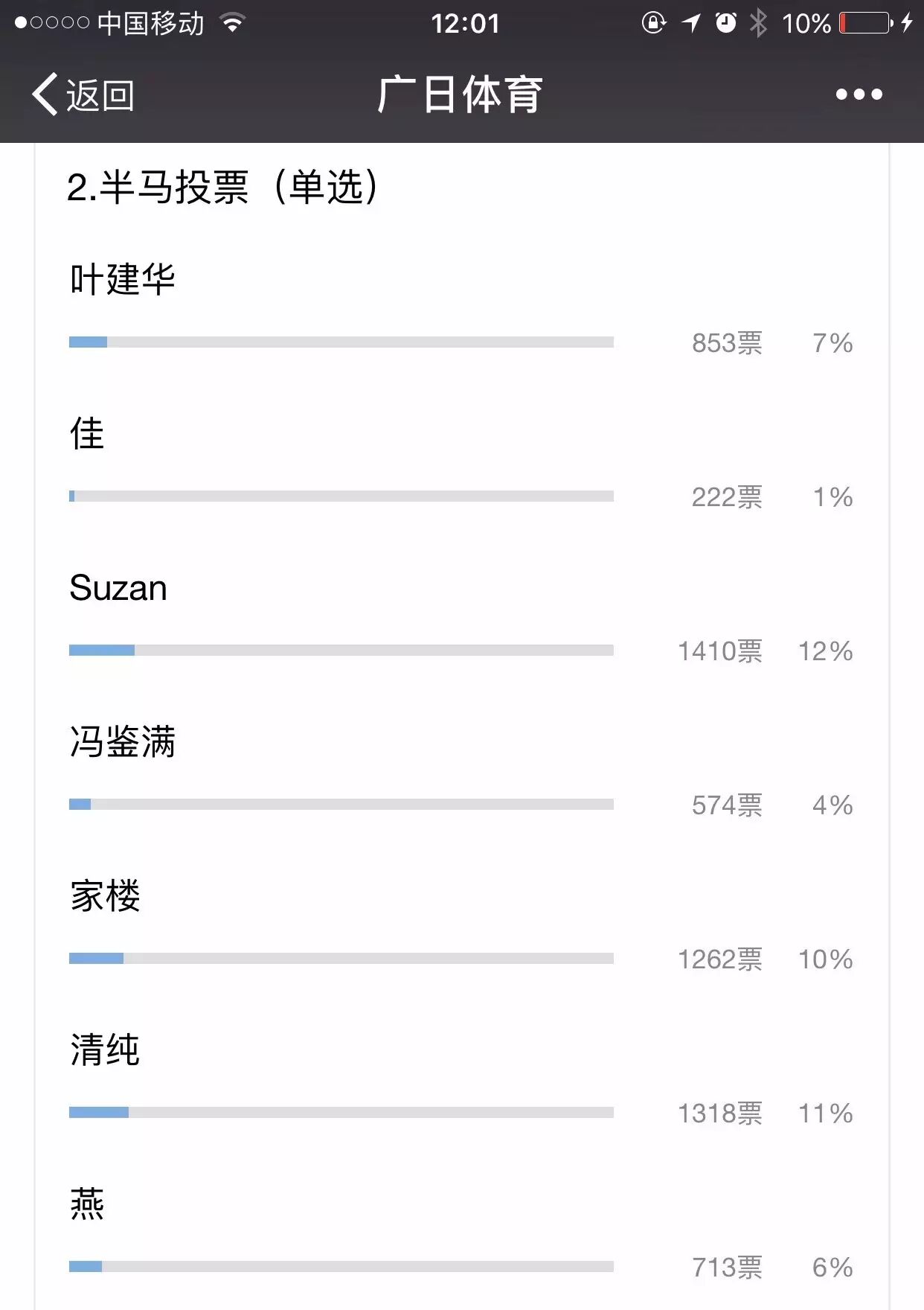 此次活动报名踊跃,在规定时间内共收到43名全马、16名半马和7名迷你马跑者的报名资料。经过编辑部海选和网友投票,广马名额各归其主,现通过“广日体育(gzdtyzx)”公众号平台和官方微博“广州日报体育新闻中心”(http://weibo.com/gzrbtyzx)发布11月13日12时终止投票截屏图以及获得广马名额跑者名单。