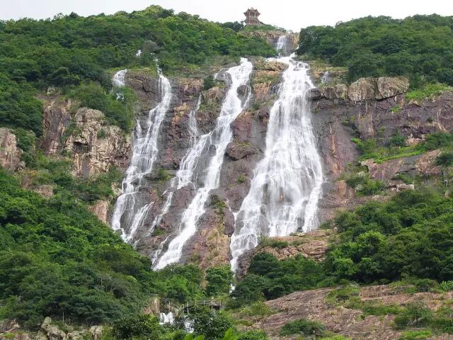 仙瀑从山顶飞泻而下,宛如一位少女裙袂飘飘,迎风而立,其美态令人叹为观止。