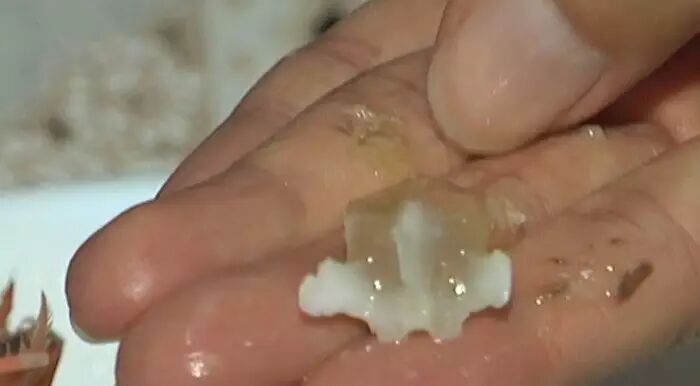 经检测,虾体内所含的异常胶体物质,并非虾自身生长而成,鉴定为“琼脂”成分,属于海藻明胶,推断为人为添加。