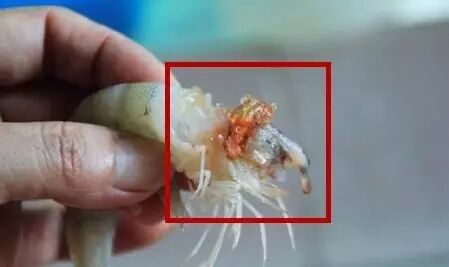 这些疑似“胶状物质”,多数集中在虾头或虾头与虾身连接处,均为透明状。
