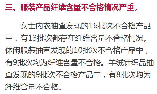 休闲服装不合格产品名单