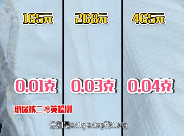 这三种品牌的纸尿裤都含有二噁英,分别是0.01g,0.03g和0.04g,三种纸尿裤都含有二噁英成分!