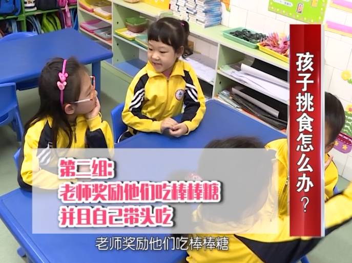 六天后,实验结果:第一组小朋友,他们中间有1个孩子会主动吃茄子;而第二组为2个,第三组,没有孩子会主动吃茄子。调查员请教专家原因。