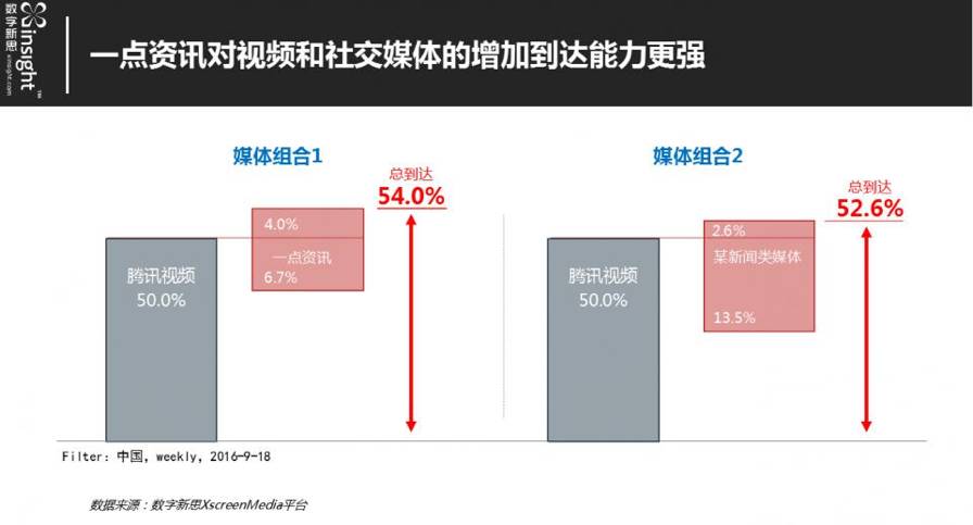 一点资讯对视频和社交媒体的增加到达能力更强(数据来源:数字新思)