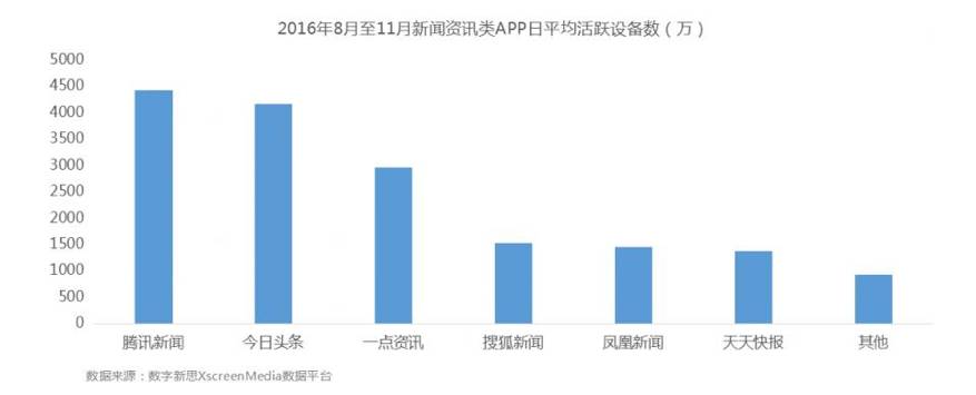 2016年8月-11月新闻资讯类App日平均活跃设备数(数据来源:数字新思)