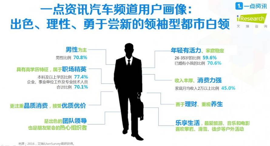 一点资讯汽车频道用户画像(数据来源:艾瑞咨询)